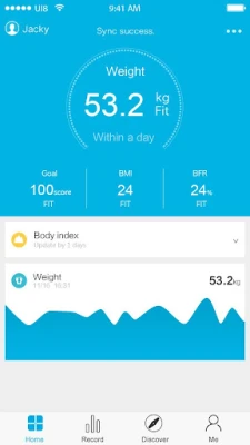 19 physical index parameters to help users manage physical health data The body weight is measured through a body fat scale, and 19 body data such as BMI, body fat percentage, muscle percentage, water, bone weight, basal metabolic rate, and protein percentage are measured and calculated using BIA bio-resistance technology.