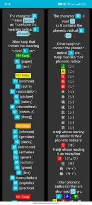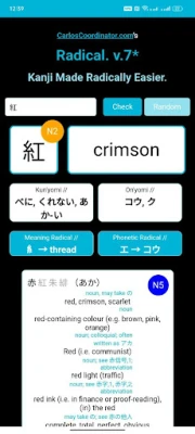 Version 11 [released Aug 27, 2025] now contains 210,641 words, 805 phonetic radicals, 278 meaning radicals, 6,368 kanji, 246,737 sample sentences and 9,756 JLPT tags, partly obtained from JMDict, KANJIDIC, Tatoeba, Ishizawa-sensei's blog, and my own memory. Radical's new version on Google Play will soon be updated to contain features such as tracking kanji & radical acquisition progress, customizable tests, and study plans by JLPT level.