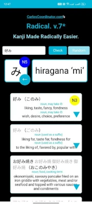 -Radical allows you to boost vocabulary acquisition by giving you the meaning of the kanji involved, samples sentences to see the word in context, and a JLPT level tag so you know if you need to memorize the word. The search function is available in both English and Japanese.