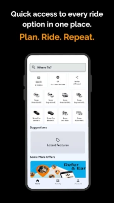 Snap Ride - Your Ridesharing app is a digital platform aimed to provide the safest and the most convenient ride experience in Australia. Choose your solo rides, shared rides, wait & save, priority pickup with our Snap Standard X, Snap Standard XL, Snap Supreme X, Snap Supreme XL, Snap Professional Black X, Snap Professional Black XL, Snap My Lovely Pet Ride, and Snap WAV Ride. Whether you are catching a flight, commuting to the office, running errands, or going out for the night, this ridesharing app offers you multiple ways to get there.