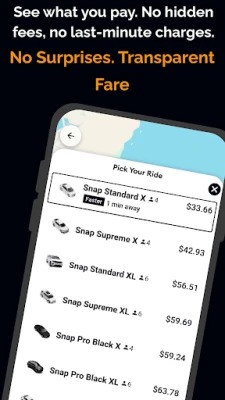 Snap Ride is all about easy fare calculations; so, go worry-free with our transparent pricing structure. With Snap Ride, you can see your price estimates before booking your ride. It is for you to have an idea of what you will pay before requesting your ride.